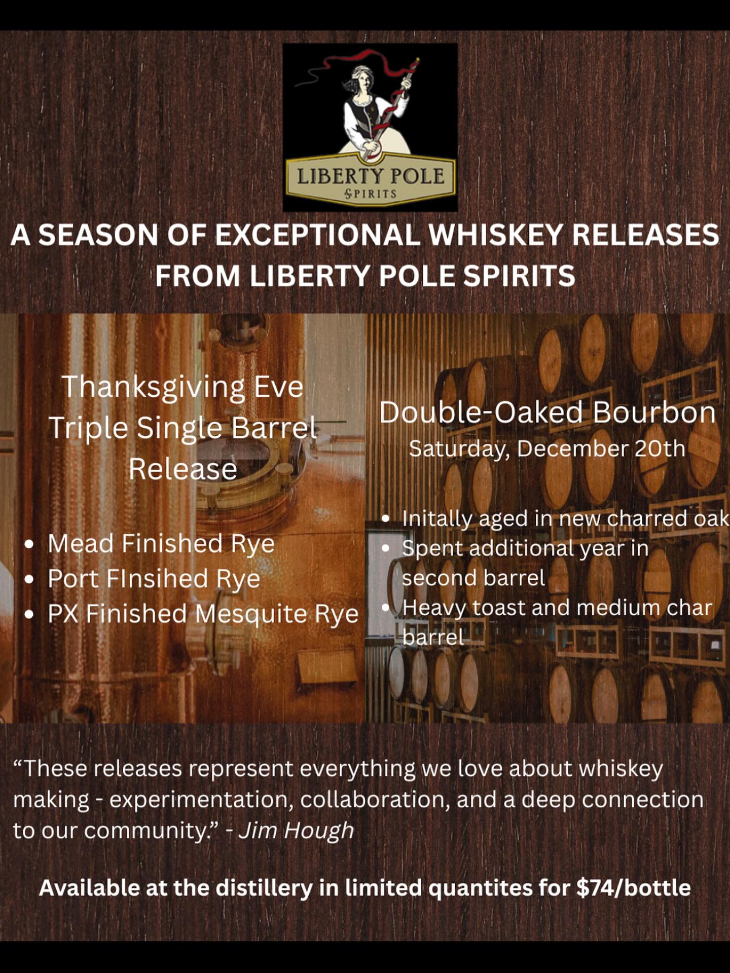 @libertypolespirits will be releasing 4 new whiskeys just in time for the holidays!